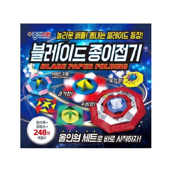 팽이를 접기에 충분한 무늬색종이, 단면색종이, 금은지색종이 등 다양한 색상의 색종이 248장이 포함되어 있어 별도로 색종이를 구입해야하는 번거로움 없이 편리하게 작품을 접을 수 있어요.
