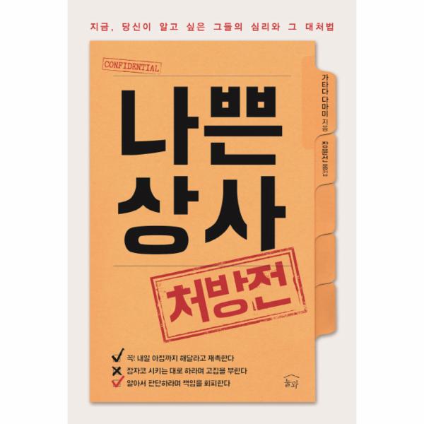 정신과 의사 가타다 다마미는 그들이 ‘상사(上司라는 병’에 걸렸기 때문이라고 말한다. 자신이 남보다 위에 있다는 생각이 들면 사람은 누구나 변하기 마련이다. 이해할 수 없을 정도로 몰상식한 행동을 반복하는 직장 상사들! 가타다 다마미는 나쁜 상사들의 심리를 행동 패턴에 따라 진단하고 그 원인을 사회 구조적으로 파헤친다. 상사 때문에 회사를 그만두고 싶은 모든 이들을 위한 심리 처방전! 전문가가 제시하는 유형별 대처법으로 당신의 몸과 마음을 스스로 지키자.