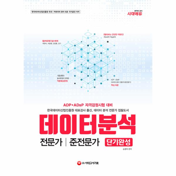 <2019 데이터 분석 전문가/준전문가 단기완성>은 한국데이터산업진흥원에서 주관하는 ADP, ADsP의 합격에 필요한 핵심 내용을 풍부한 예제와 함께 수록하여 한 권으로도 자격시험에 대비할 수 있게끔 설계되었습니다. 학습에 비중이 낮은 부분은 과감하게 간추리고, 반드시 알아야 할 부분을 강조하였으며, 기출 경향이 충실히 반영된 풍부한 예제를 수록하였기에 합격은 물론 실무에서도 적용 가능한 실전감각을 기를 수 있을 것입니다.