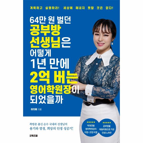 그녀는 부산 대연동 전통시장인 못골 시장에서 전문 영어 공부방을 열었다. 생선가게 옆이었지만 멋진 어학원을 가지고 있는 모습을 상상했다. 그리고 그렇게 된 것처럼 옷을 입고 행동하고 그에 맞게 수강생들을 가르쳤다.