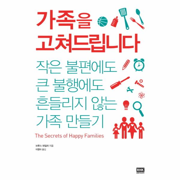 우리 사회에서 ‘가족’은 최상의 가치로 손꼽히지만, 가족에 대해 정작 우리는 무엇을 알고 있을까? 우리가 가족을 위해 할애하는 시간과 노력은 지금 이대로 좋을까? 가족과 함께하는 충분한 시간, 가족과 나누는 대화의 질적 충만함, 가사 노동과 가계 소득 및 지출의 공정한 분배, 가족 중 누군가 아플 경우의 대비책…… 무엇 하나 제대로 마련하기 어려운 현실이라면, 가족의 행복을 위해 지금 당장 행동으로 옮겨야 할 지침들을 담은 브루스 파일러Bruce Feiler의 신작 《가족을 고쳐드립니다The Secrets of Happy Families》를 펼쳐라.