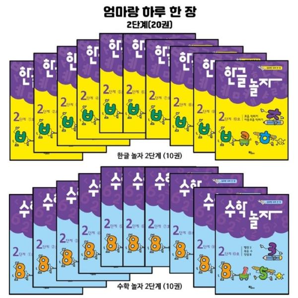 엄마랑 하루 한장 한글놀자 / 수학놀자 2단계 전20권 세트