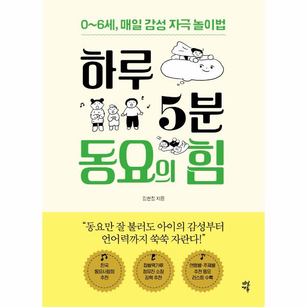 『하루 5분 동요의 힘』은 0세부터 6세까지 신체적·정서적 발달 과정에서 동요 듣기와 부르기가 미치는 긍정적인 영향을 설명하고, 아이의 연령과 돌봄 상황에 따라 동요를 고르는 법부터 부모가 아이와 함께할 수 있는 놀이들까지 일상에서 적용 가능한 실전 동요 육아 방법을 소개한다. 그동안 보육 현장에서 저자가 직접 동요 놀이를 통해 아이들을 성장시켰던 생생한 사례들을 만날 수 있다.