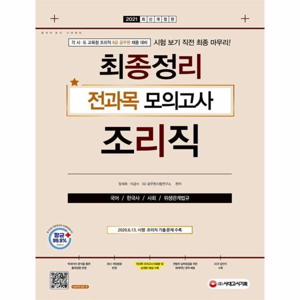 이에 학습의 마지막 단계에서 고득점에 한 걸음 더 다가갈 수 있도록 『2021 9급 공무원 조리직 최종정리 전과목 모의고사(국어·한국사·사회·위생관계법규』를 출간하였습니다.