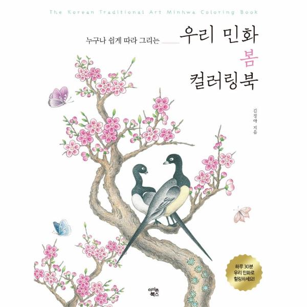 이 책은 민화를 처음 접하는 사람들도 누구나 쉽게 따라 그릴 수 있도록 했다. ‘미니 레슨’에서 기본적인 도구와 채색 기법을 알려주고, 밑그림을 큼직하게 넣어 채색이 쉽도록 했다. 기명절지도를 비롯해, 화조도, 화접도, 영모도, 부채, 책가도, 산수화, 문자도 등 다양한 오브제로 구성했으며, 무병장수, 부귀영화, 가정의 평안과 화합 등 우리 조상의 일상적 소망이 담긴 그림인 만큼 소재 하나하나의 의미를 음미하며 천천히 시작해보자!