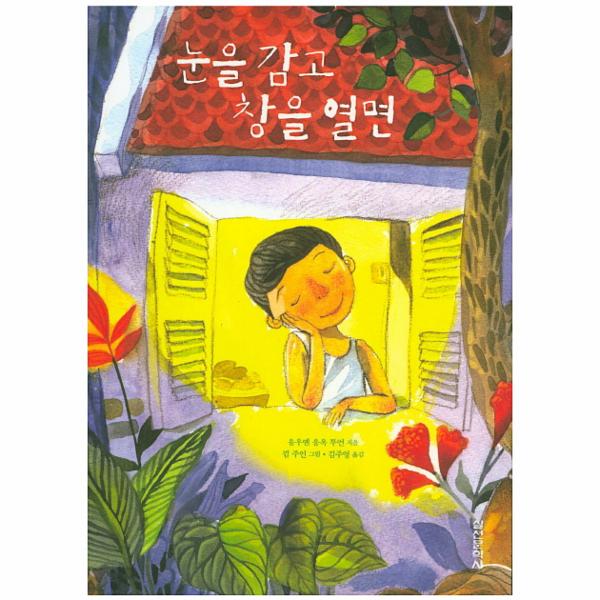 ‘베트남의 『어린 왕자』’라 불리는 『눈을 감고 창을 열면』은 2002년에 째 출판사와 호찌민작가협회가 공동으로 주최한 제3회 ‘국가의 미래를 위한 어린이문학상 공모전’에서 1위를 차지하며 세상에 나옵니다. 주인공인 열 살배기 남자아이 ‘융’은 가깝게 지내던 옆집 아저씨가 결혼을 하고 아기를 낳으면 더 이상 자기와 놀아 주지 않을까 걱정하고, 친구들 중에서 자기만 수녀님들과 친구가 된 것을 자랑스럽게 생각합니다. 아이들은 서로 다투지 않는 평온한 세상에서 너무나도 순수하고 밝게 자기들만의 일상을 살아갑니다. 그러나 한편으로는 자신을 아껴 주는 어른들의 몸에 새겨진 전쟁의 상흔과 그들이 들려주는 이야기를 통해 간접적으로나마 전쟁을 느낍니다. 그리고 어른들이 갖게 된 슬픔을 함께 나누는 방법도 배웁니다. 전쟁의 그늘이 걷힌 지 십 수 년이 지나고 전쟁이 무엇인지 모르는 어린이들이 들판을 뛰노는 세상이 왔다고는 하지만 주위 어른들은 여전히 전쟁의 상처와 고통을 짊어지고 살아갑니다. 전쟁의 총성은 멈췄지만 어른의 ‘기억’에서 어린이의 ‘마음’으로 전쟁의