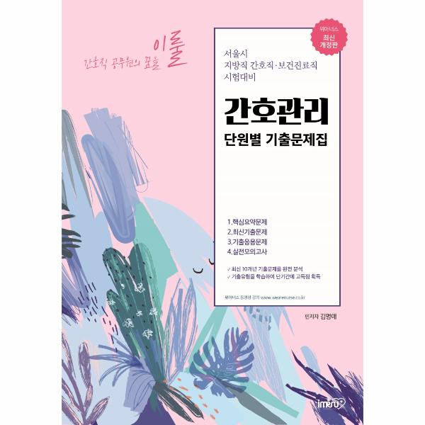 본서는 ‘간호관리’의 기본내용을 빠르게 정리하고, 기출문제를 학습하여 단기간에 ‘간호관리‘ 점수를 향상시키는 것을 목적으로 구성하였다.