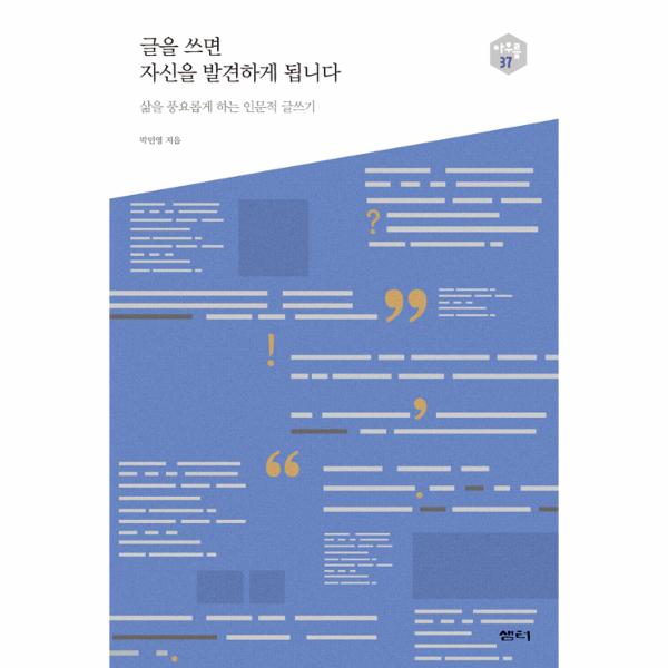 글쓰기를 10년 넘게 강의한 박민영 작가는 글쓰기가 자기를 발견할 수 있는 길이자 자존감을 높일 수 있는 방법이라고 말한다. 글쓰기는 인생에서 중요한 질문인 ‘어떻게 나로 살 것인가’와 ‘생각하기’와 연관되어 있다는 것이다. 이 책은 “왜 글쓰기가 필요할까요?”라는 질문에서 시작해서 글쓰기가 어떻게 삶을 풍요롭게 하는지 살펴본다.