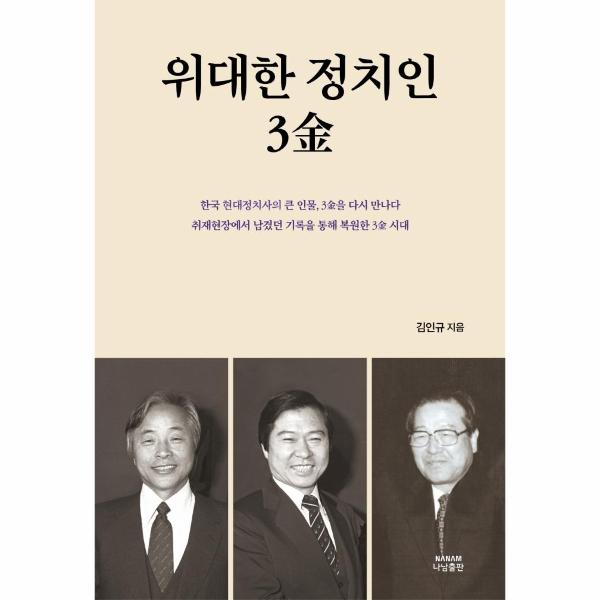 저자는 3金 시대의 산증인으로서 한국 현대정치사를 풍미했던 3金의 역사를 젊은 세대에게 전해야 한다는 간절한 사명감으로 3金 시대를 복원했다. 우리 사회의 위인을 찾아내 정확하게 평가하는 것이 언론인의 의무라고 여기는 저자는 3金이 과연 정치 분야의 위인, 즉 ‘위대한 정치인’으로 평가받을 만한 인물인지를 검증했다.