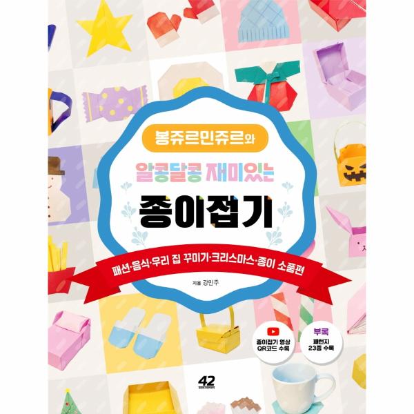 새롭게 찾아온 《봉쥬르민쥬르와 알콩달콩 재미있는 종이접기》 두 번째 책 ‘패션, 음식, 우리 집 꾸미기, 크리스마스, 종이 소품’ 편에서는 지난 첫 번째 책에 이어 귀여운 종이 장난감은 물론, 실제로 생활 속에서 꾸미고 쓸 수 있는 다양한 장식과 소품 종이접기를 소개합니다.
