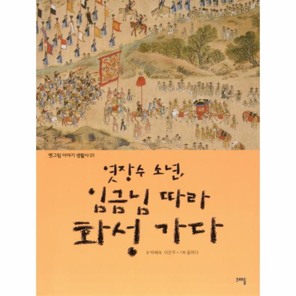 1권 『엿장수 소년, 임금님 따라 화성 가다』는 조선시대 최대 행사, ‘정조의 화성행차’를 주제로 「화성능행도 병풍」과 여러 가지 의궤 그림을 자세히 담았습니다. 또한 사실에 기반을 두고 재미있는 역사 동화로 풀어내, 8일 동안의 화성행차를 엿장수 소년 돌이의 눈을 통해 생생하게 들여다볼 수 있습니다.
