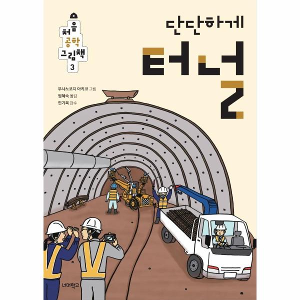 『단단하게 터널』 그림책에는 공사 현장의 사람들과 기계들의 모습이 생생하고 활기차게 담겨 있다. 터널 건설 현장에서 가장 크게 활약하는 양대 중장비는 바로 점보 드릴과 숏크리트 기계이다. 점보 드릴은 팔이 여러 개 달린 중장비인데, 팔 끝에 매달린 드릴로 바위에 구멍을 뚫는다. 이 구멍 안에 화약을 넣어 폭파하는 것이다. 이런 식으로 어느 정도 길이의 터널을 파내면 이번에는 숏크리트 기계가 나서서 터널에 숏크리트를 뿌려 표면을 단단하게 굳힌다. 숏크리트는 호스로 뿜어서 뿌리는 콘크리트를 말한다.