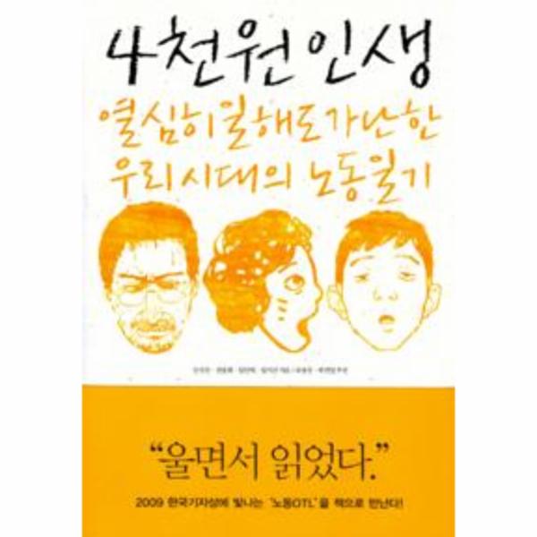 2009년 법정 최저임금은 시급 4000원이었다.(2010년 최저임금은 2.75% 인상된 4110원이다. 이 책 《4천원 인생》은 바로 최저임금의 경계에서 하루하루 열심히 일하며 살아가는 사람들의 이야기다.