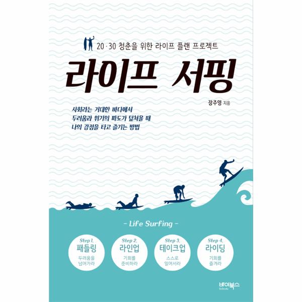 자신만의 의미 있는 삶을 발견하는 ‘라이프 서핑’ 안내서. 《라이핑 서핑》은 ‘라이프 서퍼’ 장주영이 청년들과 멘토링을 했던 경험에 뿌리를 두고 청년들이 자신의 정체성을 발견해서 평생계획을 세울 수 있도록 구성한 책이다. 서핑의 4단계를 활용한 라이프 서핑의 개념과 함께 그것을 구체적으로 실천할 수 있는 라이프 플랜 예시도 함께 제공한다. 이 책을 통해 사회라는 거대한 바다에서 두려움과 위기의 파도가 덮쳐올 때 자신의 강점을 타고 즐기는 방법을 배우고 실천해보자.