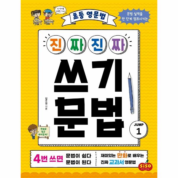 『진짜 진짜 쓰기 문법 JUMP』는 영문법의 기초가 되는 8품사부터 초등영어 교육과정을 바탕으로 한 핵심 문법 내용을 다루고 있습니다. 간결한 예문과 이해를 돕는 그림으로 명사, 대명사, 동사 등 품사의 성질과 쓰임을 익히고, 초등 교과서 필수 개념까지 차근차근 학습해 나갈 수 있도록 구성하였습니다.