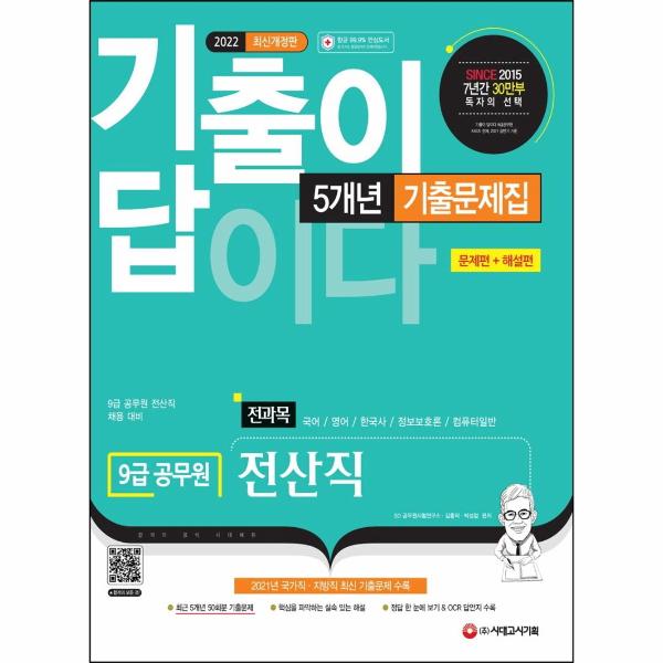 세상에 완벽하게 새로운 문제는 없습니다. 엄정한 평가기준을 요구하는 공무원 시험에서도 자주 출제되는 영역과 유형은 반드시 존재합니다. 따라서 공무원 시험은 기출문제를 기반으로 학습하는 것이 가장 효율적입니다. 공무원 시험 출제진들이 수험생들에게 남긴 유일한 합격의 단서! ‘기출문제’ 정복으로 공무원의 꿈을 이루시기 바랍니다! 지난 8년간 그래왔듯이, 2022년에도 공무원 시험은 ㈜시대고시기획의 ‘기출이 답이다’가 수험생 여러분의 답이 되어줄 것입니다.