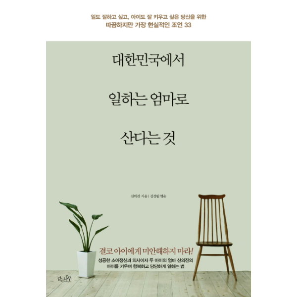 성공한 소아정신과 의사이자 두 아이를 키운 엄마 신의진이 알려 주는 아이를 키우며 행복하고 당당하게 일하는 법. 엄마, 아내, 일하는 여성, 며느리, 딸로 살고 있는 대한민국의 일하는 엄마들은 주어진 역할을 완벽하게 하면서도 더 좋은 엄마가 되기 위해 애쓴다. 그러다 아이가 아프기라도 하면 엄마가 일을 해서 아이가 아프다고 생각하고 자신에게로 비난의 화살을 돌린다. 하지만 아이를 아프게 하는 엄마는 일하는 엄마가 아니라 자신의 삶에 만족하지 못하고 스스로 불행하다고 느끼는 엄마다. 그러니 일을 한다는 이유로 무조건 아이에게 미안해하지 마라. 오로지 아이 때문에 일을 포기해서도 안 된다. 중요한 것은 ‘나는 왜 일하는가?’라는 질문에 자기만의 답을 찾고, 그 가치를 지키기 위해 노력하는 것이다. 그것이 육아는 엄마의 몫이라고 강요하는 세상에서 ‘일이냐, 아이냐’ 하는 이분법적인 사고에 갇히지 않고 당당하게 일하는 엄마로 살아갈 수 있는 방법이다. 이 책에는 20년간 소아정신과 전문의로 일하며 두 아이를 키운 신의진이 끝까지 일을 포기하지 않고 아이와 자신이 모두 행복한 삶을 찾아간 과정이 고스란히 담겨 있다. 일과 육아 사이에서 흔들리는 엄마들에게 ‘일도 잘하고 아이도 잘