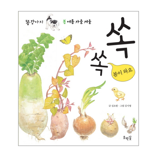 비쭉비쭉 쏙쏙. 혼자 놀던 강아지가 귀를 쫑긋거린다. 무슨 소리야? 집안 구석 어딘가에서 돋아나는 푸른 새싹들. 노란나비와 함께 숨바꼭질하듯 숨어 있는 새싹을 찾아보자. 마지?막 장면에 펼쳐지는 봄날의 풍경은 봄나들이를 가고 싶을 만큼 따사롭고 아름답다. 화사한 세밀화가 돋보이는 아기그림책.