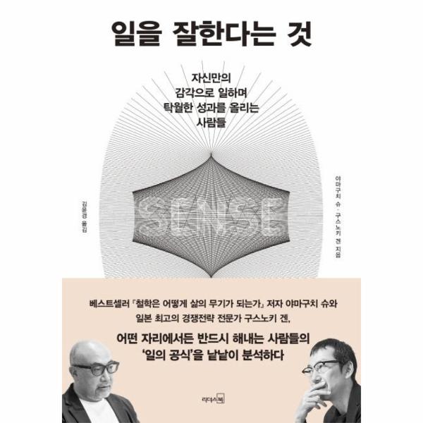 베스트셀러 『철학은 어떻게 삶의 무기가 되는가』의 저자 야마구치 슈와 일본 최고의 경쟁전략 전문가 구스노키 겐이 만나 ‘일을 잘한다는 것’의 정체에 대해 심도 깊은 대담을 진행했다. 그 결과 모두가 인정하는 ‘일 잘하는 사람들’이 공통적으로 갖고 있는 특별한 업무 비결을 한 권의 책으로 정리했다. 이 책은 그들이 어떻게 일을 바라보고 생각을 움직이는가, 자신의 업무를 반드시 탁월한 성과로 연결해내는 남다른 일의 공식을 배우고 익히기 위해 무엇을 해야 하는지 구체적으로 알려준다.