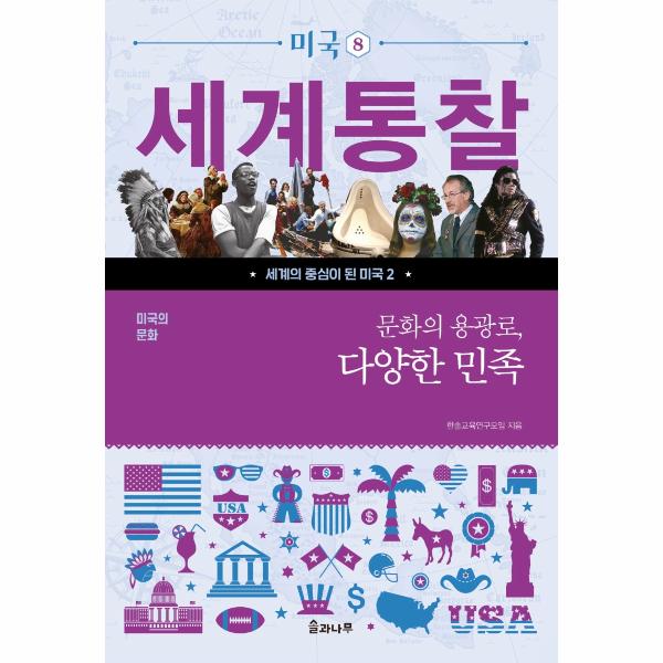 [세계통찰-미국]의 여덟 번째 책인 『미국의 문화 - 문화의 용광로, 다양한 민족』편은 우리에게 친숙한 핼러윈데이 축제, 영화 <포카혼타스>, 마틴 루터 킹 목사의 연설 등을 통해 미국을 구성하고 있는 민족들의 진면목을 보여준다. 미국의 역사는 여타 국가들에 비해 짧다. 그러나 미국인은 기나긴 역사를 가진 원주민과 이민족들로 구성되어 있다. 그러므로 역설적으로 미국의 역사는 유구하다. 미국은 세계 각 민족의 역사를 끌고 들어와 그들만의 용광로에 녹임으로써 단기간에 현대사의 골조를 완성했다. 인류의 역사를 살펴보면 타 문화를 배척하는 정책을 사용하면서 주변국을 침략한 제국이나 열강은 단기간에 멸망하고 말았다. 반면 다소 부족함이 있더라도 다른 문화를 적극적으로 수용하고 더욱 융성해지도록 장려한 나라는 오래도록 전성기를 누렸다. 다양한 문화와 민족에 대한 담론과 고민은 미국과 같은 거대한 나라에만 국한된 것이 아니다. 현재를 살아가는 우리 한국인에게도 이러한 것들은 동일하게 주어진다. 이 책을 읽으며 미국을 파악하는 것은 우리의 당면한 과제에 대해 깊이 고민하는 일도 될 것이다.