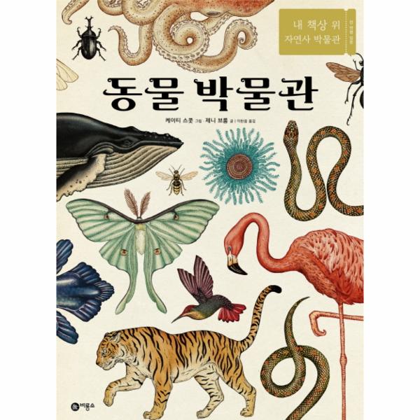 압도적인 크기에 사실적인 세밀화로 그려진 동물도감 『동물 박물관』이 (주비룡소에서 출간되었다. 이 책은 지구 생태계를 이루는 한 축인 동물계를 소개하는 박물관으로서 꾸며졌다. 「내 책상 위 자연사 박물관」이란 시리즈 이름에 걸맞게 1년 365일 언제든 구경할 수 있는 특별한 동물 박물관이다. 자연사 박물관처럼 특징을 공유하는 생물 분류에 따라 무척추동물, 어류, 양서류, 파충류, 조류, 포유류를 보여 주는 6개의 전시실로 구성되어 독자들을 동물의 세계로 초대한다. 목욕해면부터 북극토끼까지, 160여 종의 동물들을 분류별로 소개한다. 더불어 서식지별로 특별한 자연환경에서 사는 동물들도 살펴본다.
