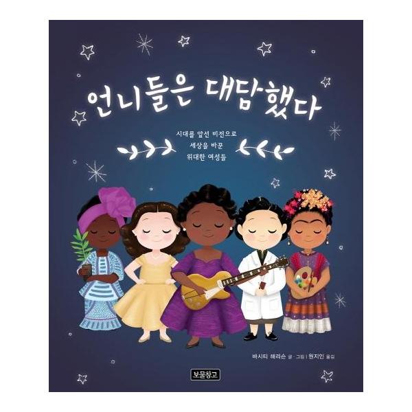36명의 언니들이 깊은 생각에 잠긴 듯이, 혹은 지금 막 꿈을 꾸고 있는 듯이 눈을 살포시 감은 채 서 있다. 이 아름다운 전신 초상화의 주인공들은 바로 시대를 뛰어넘어 전 세계에서 위대한 성취를 이룬 여성들이다. 시대를 앞선 비전으로 세상을 바꾼 이들은 과학자 마리 퀴리, 음악가 비올레타 파라, 미술가 쿠사마 야요이, 환경운동가 왕가리 마타이, 건축가 자하 하디드 등 각 분야의 선구자들이다. 몇몇은 아주 잘 알려진 이름들이고, 또 몇몇은 좀 낯설게 다가오기도 한다. 하지만 이 여성들 모두가 자신이 속한 분야에서 기존의 한계를 깨고 혁신적인 체계를 개척하며, 당당히 자신의 자리를 차지했을 뿐 아니라 세상을 더 살기 좋은 곳으로 만들었다. 누군가의 다정한 언니였으며 늘 미래를 꿈꾸는 작은 아이들이었던 이 대담한 여성들은 우리 모두 언젠가 놀라운 일을 이룰 가능성을 품고 나날이 성장하고 있음을 일깨운다. 그리고 부록에는 앞의 주인공들보다 좀 더 짧은 전기로 요약된 18명이 더 등장하여, 또 다른 많은 여성들이 인류 역사에 위대한 발자취를 남기고 있음을 암시한다.
