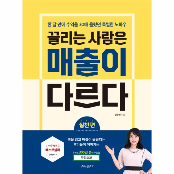 독자들 사이에서 매출을 올려주기로 입소문 난 《끌리는 사람은 매출이 다르다》가 이번에 실천 편으로 돌아왔다. ‘주하 효과’로 유튜브 300만 뷰를 돌파한 저자는 아는 것을 실천으로 완성해야 한다는 생각에 이 책을 출간하게 되었다. 전편에서 일할 때도, 일상에서도 협상의 고수가 되는 비법을 전수하며 매출을 끌어올리는 것을 목표로 했다면, 이번 실천 편에서는 ‘나는 어떤 사람인지’, ‘나의 전략은 무엇인지’, ‘끌리는 사람이 되기 위한 나만의 노하우는 무엇인지’, ‘어떻게 하면 끌리는 사람이 되어 매출을 올릴 수 있을지’ 끊임없이 묻고 있다. 여기에 가슴에 와닿는 명언을 중간중간 실어 뛰어난 전략을 세울 수 있도록 돕고 있다.
