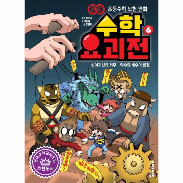 《수학요괴전》 6권 ‘십이지신의 저주 -약수와 배수의 함정’에서는 중학교에서 배울 많은 내용의 기초가 되는 개념인 약수와 배수를 공부한다. 약수와 배수는 어떤 관계일까? 최대공약수는 왜 최소공배수보다 작을까? 헷갈리는 약수와 배수, 공약수와 공배수, 그리고 최대공약수와 최소공배수의 개념을 튼튼하게 다진다. 최대공약수와 최소공배수를 활용해 분수를 약분하고 통분하는 방법까지 확실하게 정복해 보자!