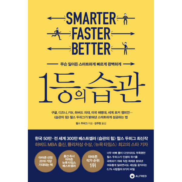 전 세계 300만 베스트셀러 『습관의 힘』 찰스 두히그가 3년 만에 더 놀라운 책을 들고 돌아왔다. 『1등의 습관』은 9개월 동안 단 하루도 쉴 수 없을 만큼 바빠서 인생의 위기에 몰렸던 찰스 두히그가 위기를 스스로 극복하기 위해 시작한 프로젝트의 결과물이다. 이를 위해 지난 2년 동안 수백 편의 경제학과 심리학, 의학 학술 논문을 살펴봤고, 구글의 인력 자원국 최고 책임자, 미국 해병대 4성 장군, 디즈니 사 최고 창의성 책임자와 [겨울왕국] 제작진, 하버드 의대 교수, FBI 국장과 수사관들, 세계 포커 챔피언 등 세계 최고의 인재들을 만났다. 그 결과 여유롭게 일하면서도 세상을 움직이는 0.1% 인재들이 지닌 놀라운 비밀 여덟 가지를 찾아냈다. 그리고 이 비밀을 자신에게 적용해 일에서의 자신감과 삶의 여유를 되찾을 수 있었다. 직업적으로 엄청난 성공을 거두면서 삶에 대한 만족도까지 높은 사람들의 특별한 비결이 이제 당신에게 공개된다. 『1등의 습관』은 아마존 선정 2016년 가장 기대되는 책으로 뽑혔고, 찰스 두히그는 이 책으로 아마존 비즈니스 작가 순위 1위에 이름을 올렸다.