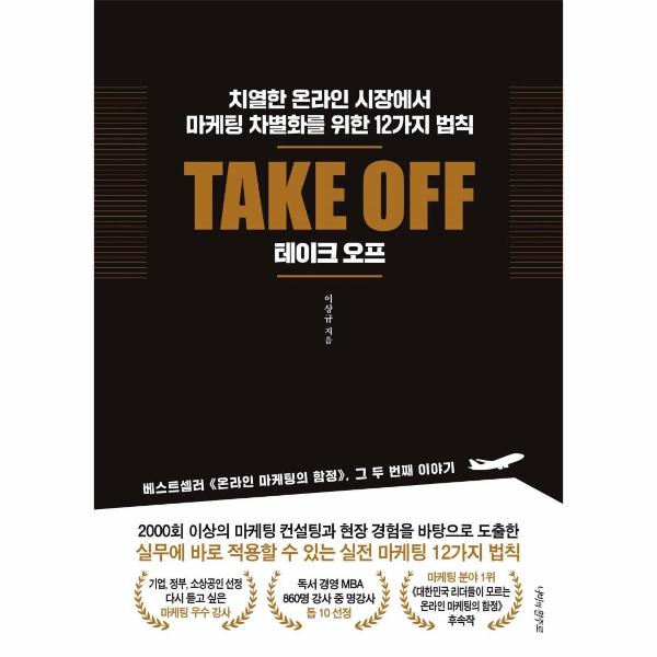 저자는 약 2000회에 걸친 마케팅 컨설팅을 통해 많은 사장님을 만나보았는데, 차별화의 함정에 빠져 매출이 나지 않는 경우가 많았다. 그래서 앞서 말했듯 어떤 제품, 어떤 서비스를 제공하더라도 적용할 수 법칙을 고심했고, 더불어‘어떻게 해야 마케팅이라는 날개를 달았을 때 힘차게 날아오를 엔진을 달아줄 수 있을까?’하고 많은 고민을 거듭했다. 고심과 연구 끝에 소상공인 사장님도 간단하게 실무에 적용할 수 있는 방법론을 이 책에 담았다. 이 책에서는 자신이 제공하는 제품이나 서비스에 실제로 고심하여 전략을 세울 수 있도록 ‘테이크 오프 트레이닝(Take Off Training’이 수록되어 있다.