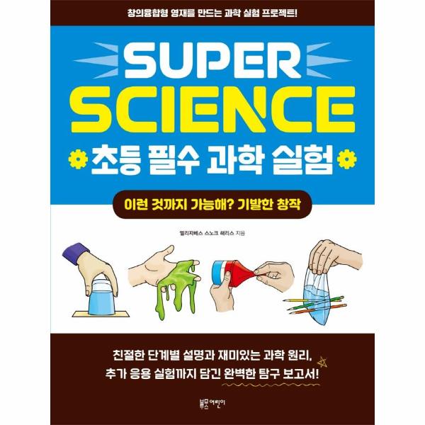 〈SUPER SCIENCE 초등 필수 과학 실험〉은 아이들이 집이나 주변에서 손쉽게 찾을 수 있는 재료로 쉽고 안전하게 실험하고 재미있는 탐험 장비를 만들어 보면서 과학적 지식이 쌓이도록 돕는 책입니다. 실험마다 안전 수칙, 필요한 재료, 단계별 설명은 물론 이해를 돕는 그림과 재미있는 과학 원리, 추가 응용 실험까지 담았습니다. 이 책의 모든 실험을 다 할 수 없다면 읽으면서 이해하세요. 실험 과정을 머릿속에 그려 보고 결과를 상상하면서 실험에 담긴 과학 원리와 응용까지 읽으면 하나의 실험이 마무리된답니다. 이 과정에서 과학적으로 생각하는 힘이 자연스럽게 키워집니다. 이렇게 읽기만 해도 책 속에 담긴 과학 실험들이 쏙쏙 이해된답니다. 〈SUPER SCIENCE 초등 필수 과학 실험〉으로 직접 실험하는 즐거움과 읽으면서 이해하는 즐거움을 모두 경험해 보세요.