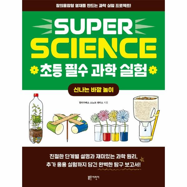 〈SUPER SCIENCE 초등 필수 과학 실험〉은 아이들이 집이나 주변에서 손쉽게 찾을 수 있는 재료로 쉽고 안전하게 실험하고 재미있는 탐험 장비를 만들어 보면서 과학적 지식이 쌓이도록 돕는 책입니다. 실험마다 안전 수칙, 필요한 재료, 단계별 설명은 물론 이해를 돕는 그림과 재미있는 과학 원리, 추가 응용 실험까지 담았습니다. 이 책의 모든 실험을 다 할 수 없다면 읽으면서 이해하세요. 실험 과정을 머릿속에 그려 보고 결과를 상상하면서 실험에 담긴 과학 원리와 응용까지 읽으면 하나의 실험이 마무리된답니다. 이 과정에서 과학적으로 생각하는 힘이 자연스럽게 키워집니다. 이렇게 읽기만 해도 책 속에 담긴 과학 실험들이 쏙쏙 이해된답니다. 〈SUPER SCIENCE 초등 필수 과학 실험〉으로 직접 실험하는 즐거움과 읽으면서 이해하는 즐거움을 모두 경험해 보세요.