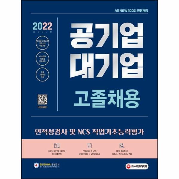 『2022 최신판 All-New 공기업ㆍ대기업 고졸채용 인적성검사/NCS 직업기초능력평가+무료특강』은 2022년 공기업ㆍ대기업 고졸채용 채용 대비 기본서이다. 공사공단 기출유형을 파악할 수 있도록 2021년 공기업ㆍ대기업 고졸채용 최신기출문제를 수록하였다. 또한 핵심유형과 더불어 대표유형 길라잡이를 통해, 기본적인 이론과 함께 출제되는 유형의 문제를 확인해 볼 수 있도록 하였고, 장별로 유형완전정복을 구성하여 다양한 유형에 대비할 수 있도록 하였다. 그리고 인적성검사와 NCS 직업기초능력평가의 실전모의고사를 각각 구성하여 시험 전 최종 마무리 점검을 할 수 있도록 하였다. 마지막으로 취업의 기본이 되는 이력서 작성, 자기소개서 작성, 면접 등의 준비를 통해 채용의 모든 과정을 대비할 수 있도록 하였다.