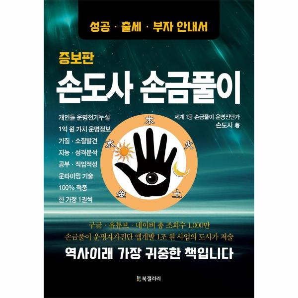 기존 ‘손도사 손금풀이’ 책을 대폭 수정·보완한 증보판. 사람 누구나 가지고 있는 손금의 형태에 따라 각 개인의 타고난 기질·체질·소질발견 그리고 지능·재능·성격 분석과 운(運을 분류하고 선천운과 후천운 등의 평생운명에 대해서도 알기 쉽게 풀어쓴 이 책은 상세한 그림과 함께 적절한 명칭 및 해설이 곁들여져 있어 이 책 한 권만으로도 각 개인의 손금의 생김새에 따라 자신의 운명을 본인 스스로 손쉽게 찾아볼 수 있는 것은 물론, 가까운 상대의 손금까지도 전문가처럼 쉽게 해석할 수 있도록 했다.