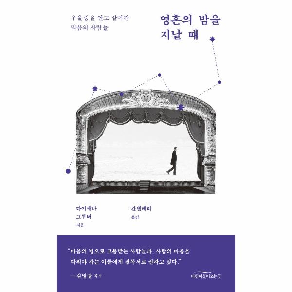 <영혼의 밤을 지날 때>에서 다이애나 그루버는 교회 역사 속에서 우리가 가장 아끼고 소중히 여기는 믿음의 인물들의 삶에서 우울증의 흔적을 찾아낸다. 종교개혁의 기수였던 마르틴 루터부터 시작하여 ‘설교의 황태자’로 불리는 찰스 스펄전, 전 세계 사람들이 우러러 추앙했던 ‘캘커타의 성녀’ 마더 테레사, 흑인 민권 운동의 선두에 서서 세상을 변화시켰던 마틴 루서 킹 주니어를 포함한 7인의 성자들. 다이애나는 이들의 삶을 멀찍이서 바라보며 진단을 내리는 것이 아니라 각 인물에 삶에 가까이 접근하여 새로운 시각으로 그들의 삶을 통찰하여 오늘날 우울증을 안고 살아가는 이들에게 위로와 격려가 될 만한 이야기와 통찰을 찾아낸다. 오랜 우울증의 시간을 살아 낸 저자 자신의 경험까지 아우르며 다이애나는 영혼의 어둔 밤을 걷고 있는 이들과 그들을 돌보는 가족과 친구들에게 모두 도움이 되는 유용한 풍성한 지혜를 제시한다.