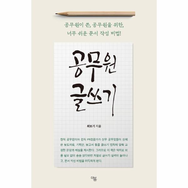 이 책의 가장 큰 특징은 먼저 일선 공무원들이 실제로 쓴 각종 글쓰기 원문을 보여주고, 저자가 이를 쉽고 간결하게 고친 교정문을 함께 제시하는 점이다. 그리고 고친 이유를 하나하나 구체적으로 설명함으로써 공무원들이 독서를 통해 글쓰기 이론과 실습을 동시에 습득할 수 있는 것이 강점이다. 따라서 가벼운 마음으로 이 책을 읽기만 해도 누구나 쉽게 문서 작성법과 글쓰기 요령을 익힐 수 있다.