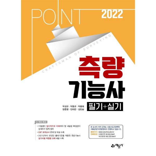 이상과 같은 점에 대해 역점을 두어 측량기능사의 참고서로서의 역할을 다할 수 있도록 최선을 다하고자 하였으나 아직 미숙한 점이 많으리라 판단되며, 앞으로 더 알찬 참고서가 되도록 독자 여러분의 많은 충고와 격려를 바라는 바이다.