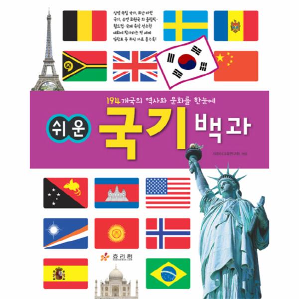 「쉬운 국기 백과」는 전 세계 194개국의 국기와 문화를 소개한 어린이용 학습 교양서입니다. 대륙별로 각 나라의 국기와 국기에 담긴 뜻을 소개하?고, 각 나라의 역사, 문화, 산업 등을 간략하게 다루었습니다. 또한 소개하는 나라와 관련된 생생한 컬러 사진을 실어 내용 이해를 도왔습니다. 이 책과 함께 세계 곳곳으로 여행을 떠나 보세요!