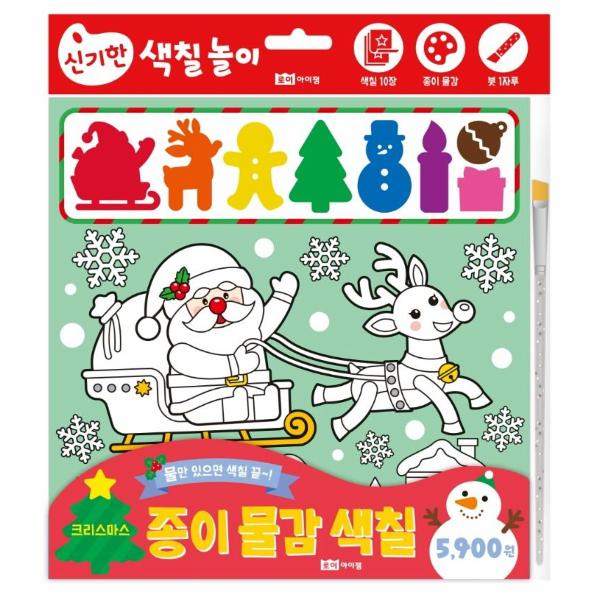 아이들이 기다리는 산타클로스와 루돌프를 비롯해 눈사람, 요정과 천사, 썰매, 케이크와 과자 집 등 바라만 봐도 신나는 크리스마스 아이템을 만나 보세요. 다양한 크리스마스 아이템을 직접 색칠하는 동안 아이들의 행복한 추억이 소복소복 쌓일 거예요! 낱장으로 한 장씩, 붓에 물만 묻혀 바로 칠할 수 있어서 진짜 편하고 휴대성도 좋아요.