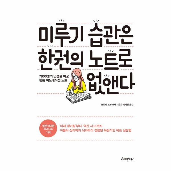 미루기 습관에 빠져 있던 7800명의 인생을 바꾼 기적의 노트 쓰기법 ‘행동 이노베이션 노트’의 모든 것을 공개한 『미루기 습관은 한 권의 노트로 없앤다(라이팅하우스 간』가 출간되었다. 일본대학 승마부를 2년 연속 우승으로 이끌고, 세계적인 톱 모델, 베스트셀러 작가, 올림픽 출전선수 등의 목표 실현을 도운 비즈니스 리더들의 멘탈 코치 오히라 노부타카가 아들러 심리학과 뇌과학이 결합된 획기적인 목표 실현법을 알려 준다.