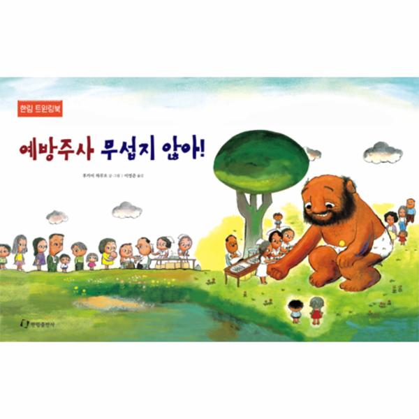 한림출판사의 인기 그림책 『예방주사 무섭지 않아!』가 트윈링북 형태로 출간되었다. 트윈링북은 기존 도서의 두 쪽을 하나의 큰 펼침면으로 구성해서 세워두고 뒤로 넘기며 여럿이 함께 볼 수 있는 특수 도서이다. 책의 그림과 내용을 함께 읽고, 책놀이 프로그램과 생각하기 문제가 함께 들어 있어, 단체 독서 활동에 적합하다. 『거인 아저씨 배꼽은 귤배꼽이래요』의 후속편 『예방주사 무섭지 않아!』의 익살스럽고 재미있는 그림과 이야기를 트윈링북을 통해 새롭게 만날 수 있다.