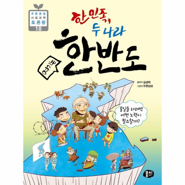 「초등 융합 사회과학 토론왕」 시리즈의 18번째 책인 『한민족, 두 나라 여기는 한반도』는 주인공 주한이와 가윤이가 한반도 역사 박물관에서 수업을 듣는 장면에서부터 시작된다. 일본 식민지를 벗어나 광복을 맞은 기쁨을 채 누리지도 못하고 미국과 소련에 의해 38선이 그어지면서 남과 북으로 나뉘게 된 역사적 배경, 이후 남한의 단독선거가 치러지면서 결국 남한과 북한으로 나뉘게 되는 과정, 한국전쟁의 발발부터 영향까지 파란만장한 우리나라의 근현대사를 이해하기 쉽도록 이야기 형식으로 풀어냈다. 특히 초등학생인 주인공의 시선에서 질문을 하고 선생님과 이야기를 주고받는 구성과 다소 어렵게 느껴질 수 있는 개념은 별도의 정보페이지로 알기 쉽게 정리하였다.