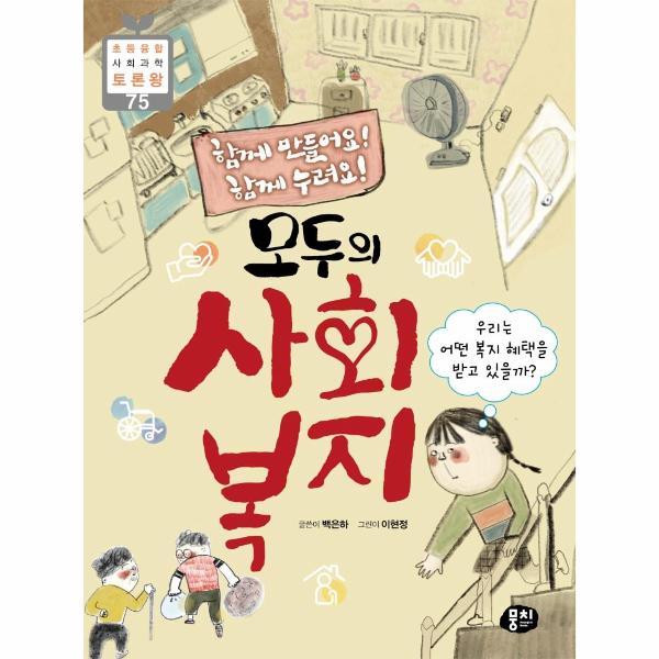 『함께 만들어요! 함께 누려요! 모두의 사회 복지』는 독서량이 풍부하지 않고 자발적인 독서를 어려워하는 어린이들도 큰 부담을 느끼지 않도록 스토리텔링 형식의 재미있는 이야기와 그림으로 구성되었습니다. 뿐만 아니라 책의 주제에 관해 생각해 볼 수 있는 도입 만화와 중간 만화, 그래픽 정보, 토론 등 다양한 읽을거리를 제공합니다. 특히 어린이들이 생활 속에서 직접 접할 수 있는 흥미로운 이야기를 통해 좀 더 사회적인 이슈와 현상에 쉽게 다가갈 수 있도록 했습니다.
