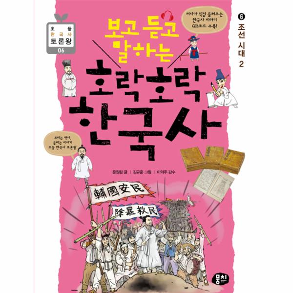 뭉치의 초등 한국사 토론왕 시리즈『보고 듣고 말하는 호락호락 한국사』(전 7권 여섯 번째 이야기 ⑥ 조선 시대 2가 발간되었습니다.『보고 듣고 말하는 호락호락 한국사』는 단순히 읽고 끝나는 기존의 초등 한국사 책들과는 다르게 저자가 직접 들려주는 ‘한국사 이야기 QR코드’가 수록되어 있습니다. 역사를 어려워하는 아이들이 마치 옛날이야기를 듣는 것처럼 쉽고 재미나게 한국사 공부를 할 수 있도록 도와줍니다.