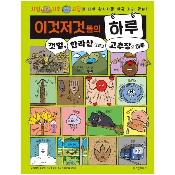 갯벌, 한라산 그리고 고추장이 직접 들려주는 그들의 하루는 어떤 모습일까? 이 책에서는 지형, 기후, 고장 등 초등 사회 교과 과정 중 한국 지리와 관련한 100여 가지 ‘이것저것들’이 등장해 자신의 하루에 대해 직접 설명해 준다. 항상 보고 있어서 다 알고 있다고 생각하는 산과 강의 새로운 모습부터 전혀 몰랐던 ‘이것저것들’의 여러 속사정까지 자세히 알 수 있다.