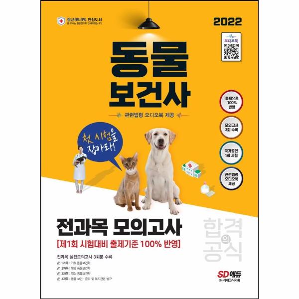 ▶ <동물보건사 전과목 모의고사> 도서는 국가공인 제1회 시험대비 출제기준 100% 반영하였고, [1과목] 기초 동물보건학 [2과목] 예방 동물보건학 [3과목] 임상 동물보건학 [4과목] 동물 보건.윤리 및 복지관련 법규의 전과목 실전모의고사 3회분 수록하였습니다. 수의사법 및 동물보호법 등 관련 법령을 오디오북으로 제공하여 효율적인 학습이 이루어지도록 구성하였습니다. 첫 시험을 준비하는 모든 수험생들의 곁에는 (주시대고시기획이 함께 합니다!