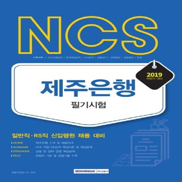 2019 하반기 NCS 제주은행 필기시험 - 일반직.RS직 신입행원 채용 대비
