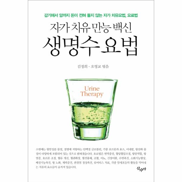요료법 연구자들이 수천 년 동안 탐구해 온 결과, 요료법은 면역증진, 혈당혈압조절, 항암역할, 항염증, 호르몬 조절, 혈류 개선, 혈관확장, 혈전용해, 조혈, 이뇨, 긴장이완, 수면촉진, 소화기능향상, 배설기능촉진, 항 노화, 체력증진, 관절염 정상촉진, 류머티스 치료, 각종 암세포들의 활동을 막아내는 치유의 요소들을 가지고 있음이 밝혀졌습니다. 오줌은 인체에 효능이 있는 건강약의 원재료로 구성되어 스스로 치유하는 물질을 만들어 내는 기적의 원소들이기에 더 많은 활용이 필요합니다.