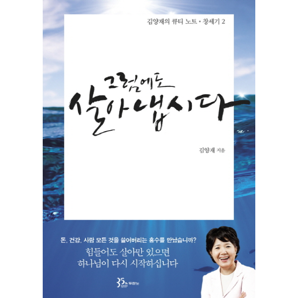 세상 방식대로 살다 돈, 건강, 사람 모든 것을 쓸어버리는 홍수를 만났는가? 홍수로 쓸어버릴 수밖에 없는 죄악이 나에게 있다. 하나님은 그 악함을 회개하고 예수 방주를 타라고 하신다. 힘든 환경에서 어떻게 반응하는가? 하나님만 바라볼 수 밖에 없는 것이 최고의 은혜다. 500년 동안 아들이 없었으며, 극심한 생활고에 시달리다가 조롱과 수치를 당하던 노아에게서 구원의 길을 배우라. 죄를 수장시키고 힘든 현실을 돌파하는 힘을 얻으라.