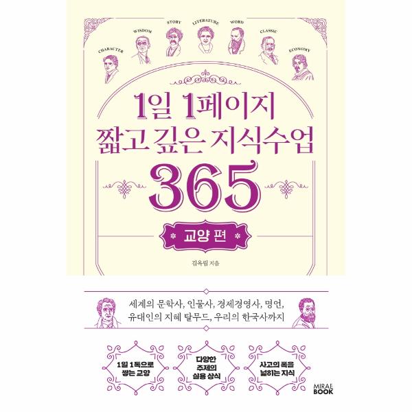 방대한 지식의 양이지만 하루에 1페이지를 읽는 것만으로도 교양의 폭을 넓히고, 세상을 바라보는 관점이 변화하는 즐거움을 느낄 수 있을 것이다.